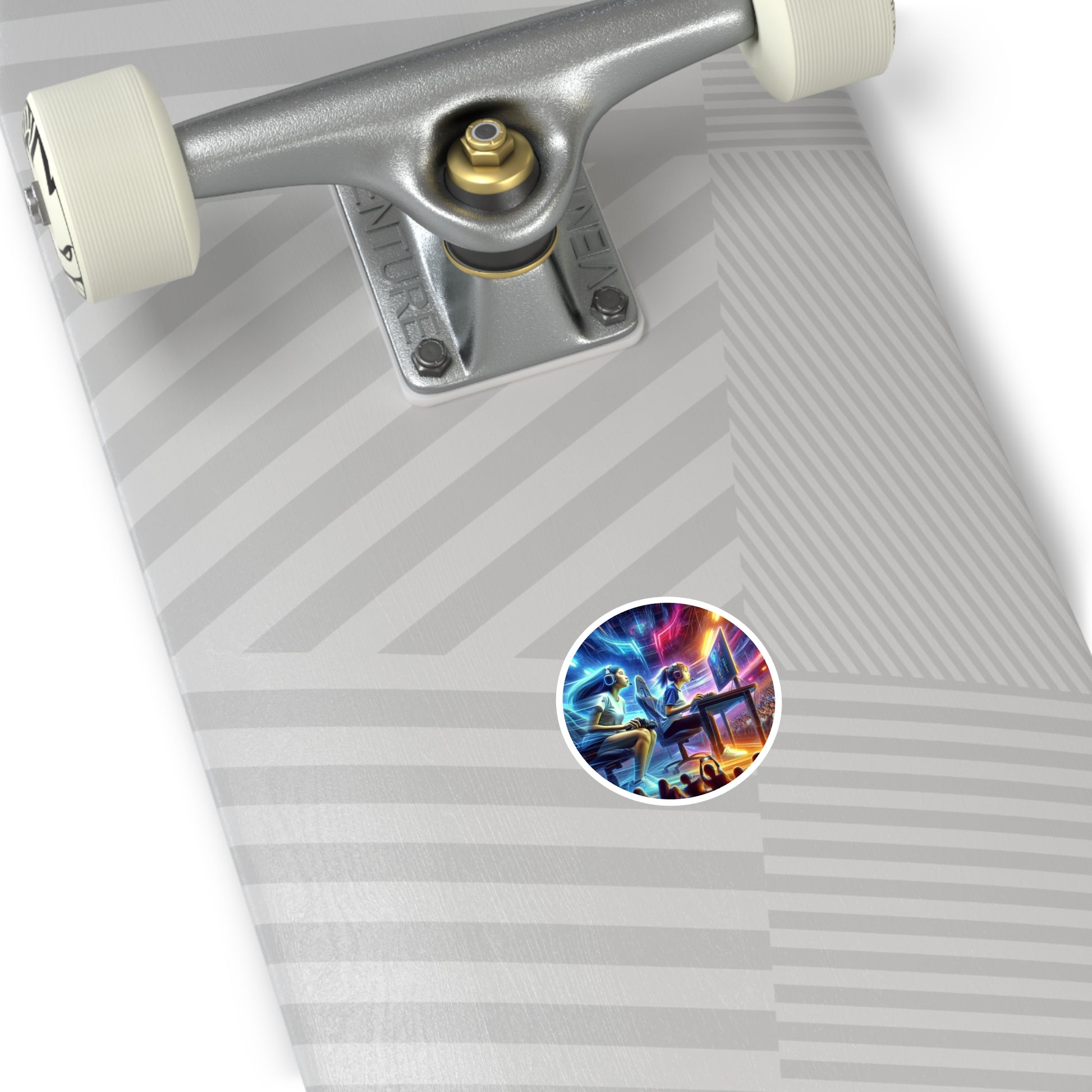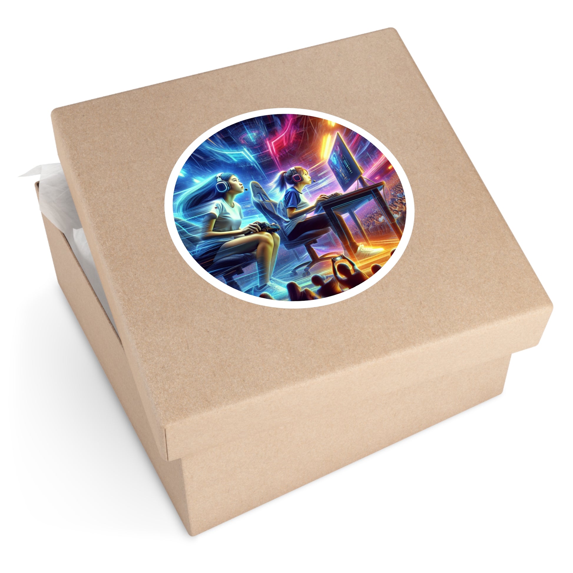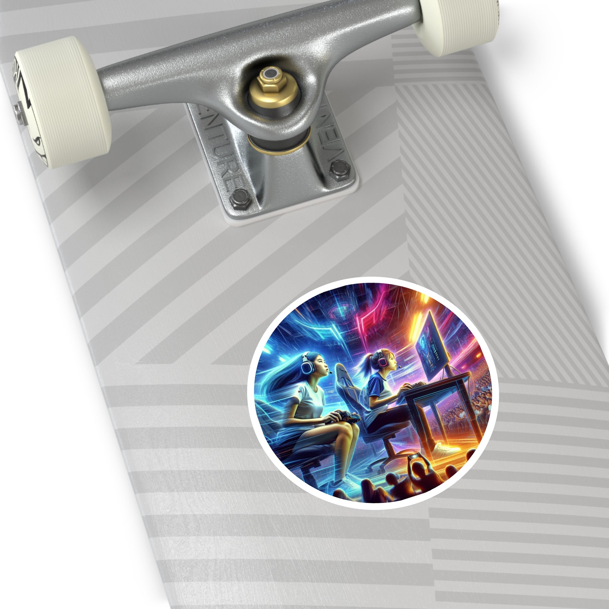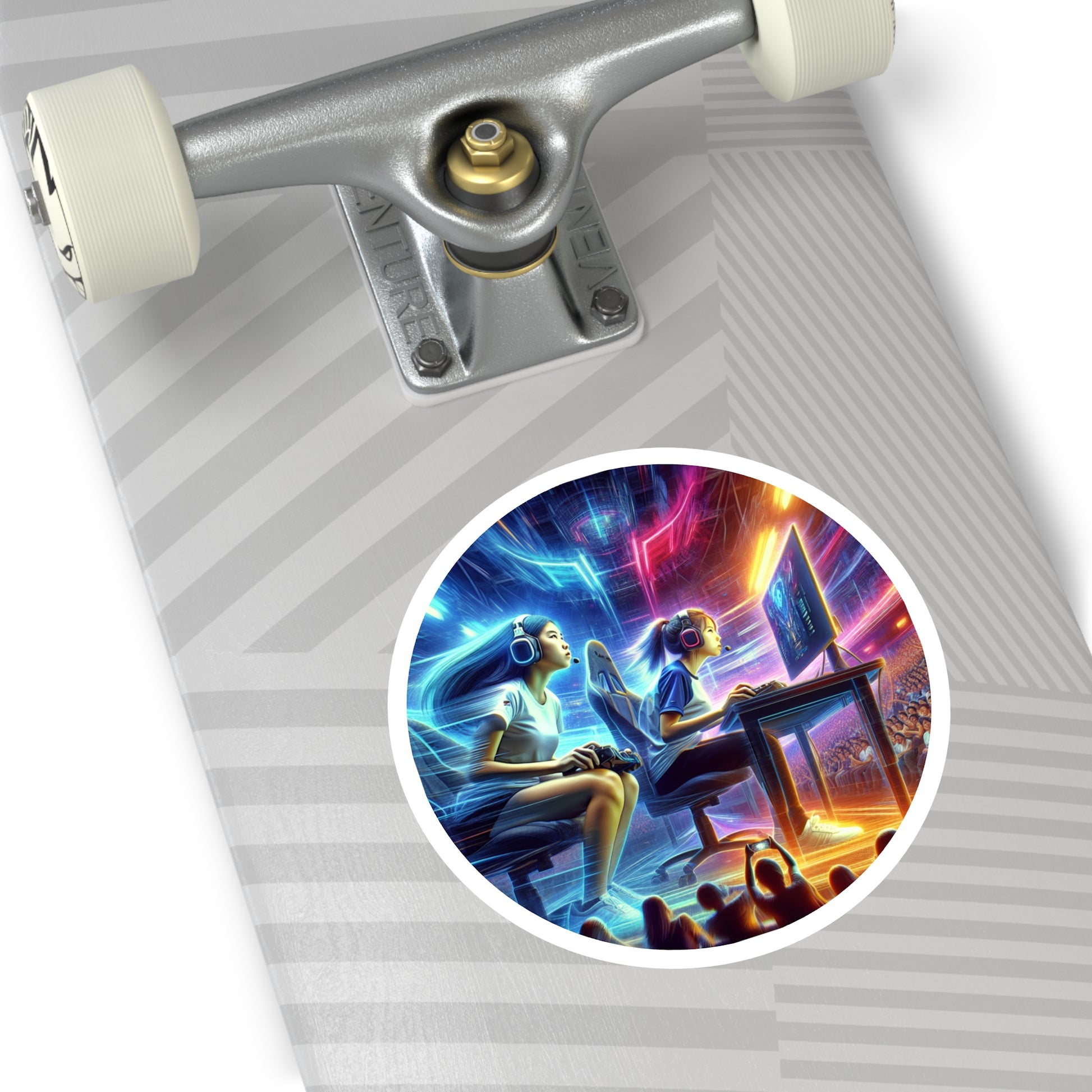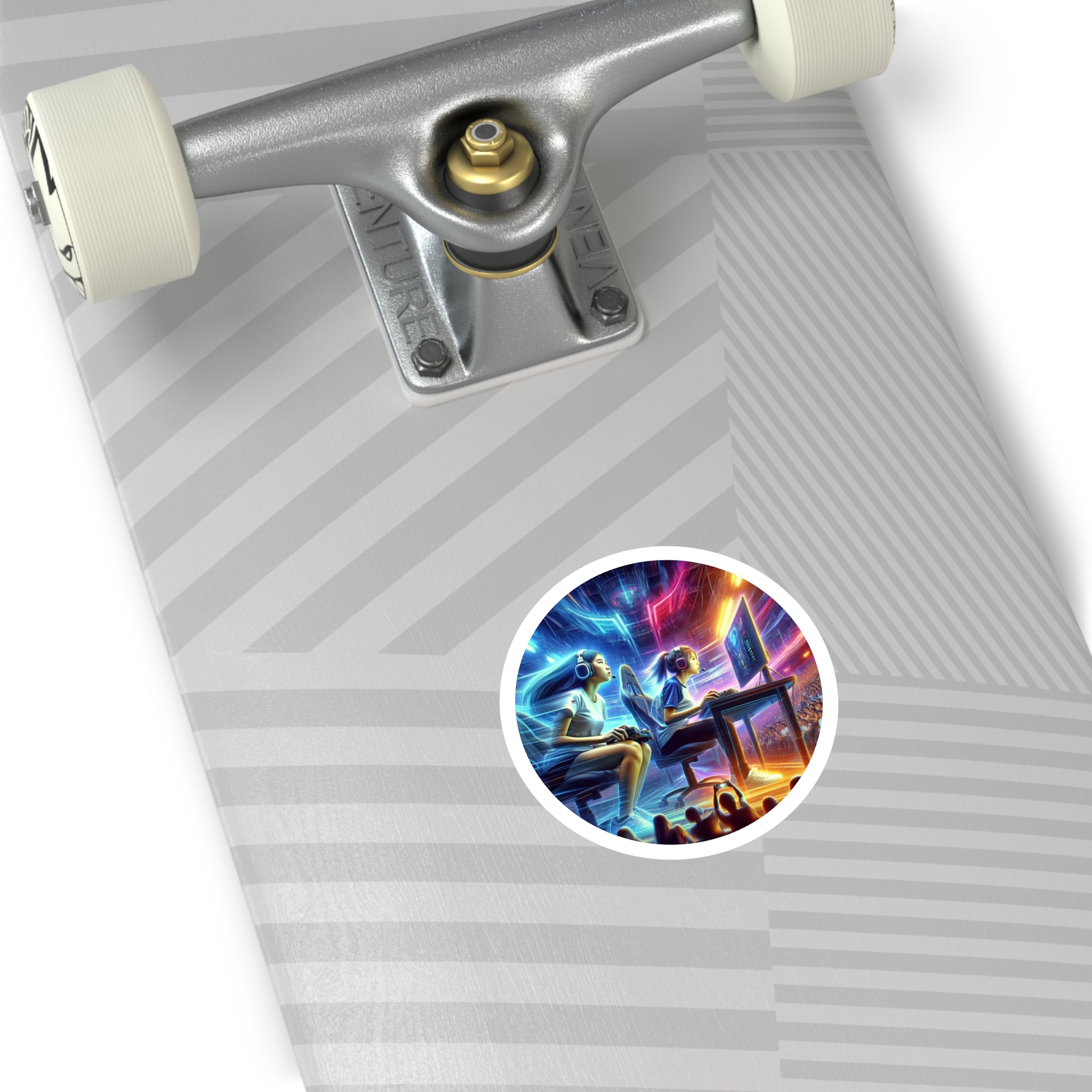 Teenagers competitive gamers sticker with vibrant colors, perfect for personalizing laptops, notebooks, and gaming consoles. It adds a fun and edgy vibe to your belongings, ideal for teens who love gaming and compete in online gaming tournaments. Relevant for birthdays, holidays, and gaming events.